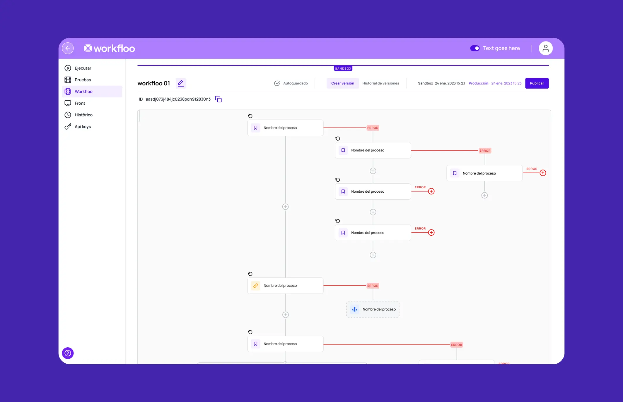 Workfloo’s creation and editing flow is based on configurable connectors that handle validations, credit bureau requests, partnership integrations, and branching logic. It also supports error outputs, helping teams define how each workflow should respond when a step fails or returns a specific result.